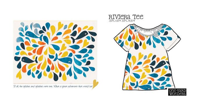 The Riviera Tee was one of my first designs for Spoonflower and first “proper” design (there were many more behind the scenes, I have several hard drives full of scanned sketches, not so seamless patterns and experiments from that beginning stage), it came in third place and luckily several talented sewers picked it up and posted about it, which led to my first contract with a fabric company.